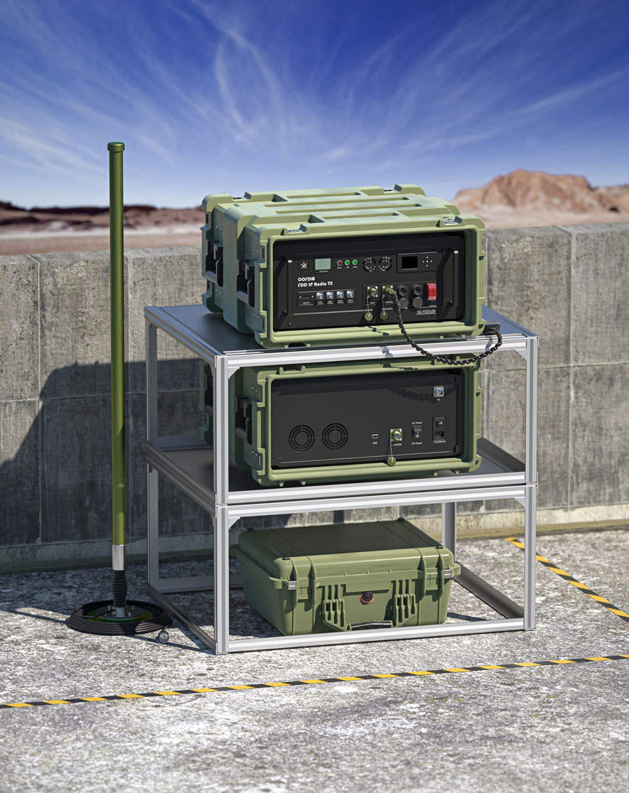 Designed in a 4U rack case with an outer shock-proof box, the SFGT-FD100VCS IP transmission system has a high 100W RF power output, which can achieve ultra-long ranges of up to 50km in non-line-of-sight (NLOS) and 100km in line-of-sight (LOS) on the ground. The SFGT-FD100VCS IP video transmitter is an open, customizable solution, with the capability to embed H.265 video compression codecs for connecting digital and analog video cameras with HDMI, SD-SDI, HD-SDI, and CVBS ports.